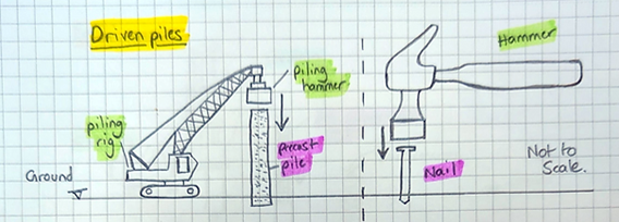 To help visualise – the piling rig acts like a giant hammer