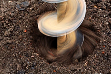 4. Drilling: The CFA piling rig’s hydraulic motor rotates the continuous flight auger, which drills into the ground.