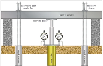 Static Load Test: In a static load test, a predetermined load is applied to the pile using a large counterweight and hydraulics.