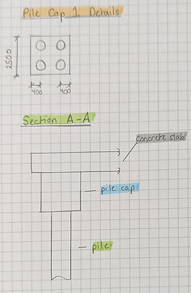 This shows you dimensions for the Pile Cap and how it sit’s in relation with the rest of the structure. Think of a section showing you a slice through the building.